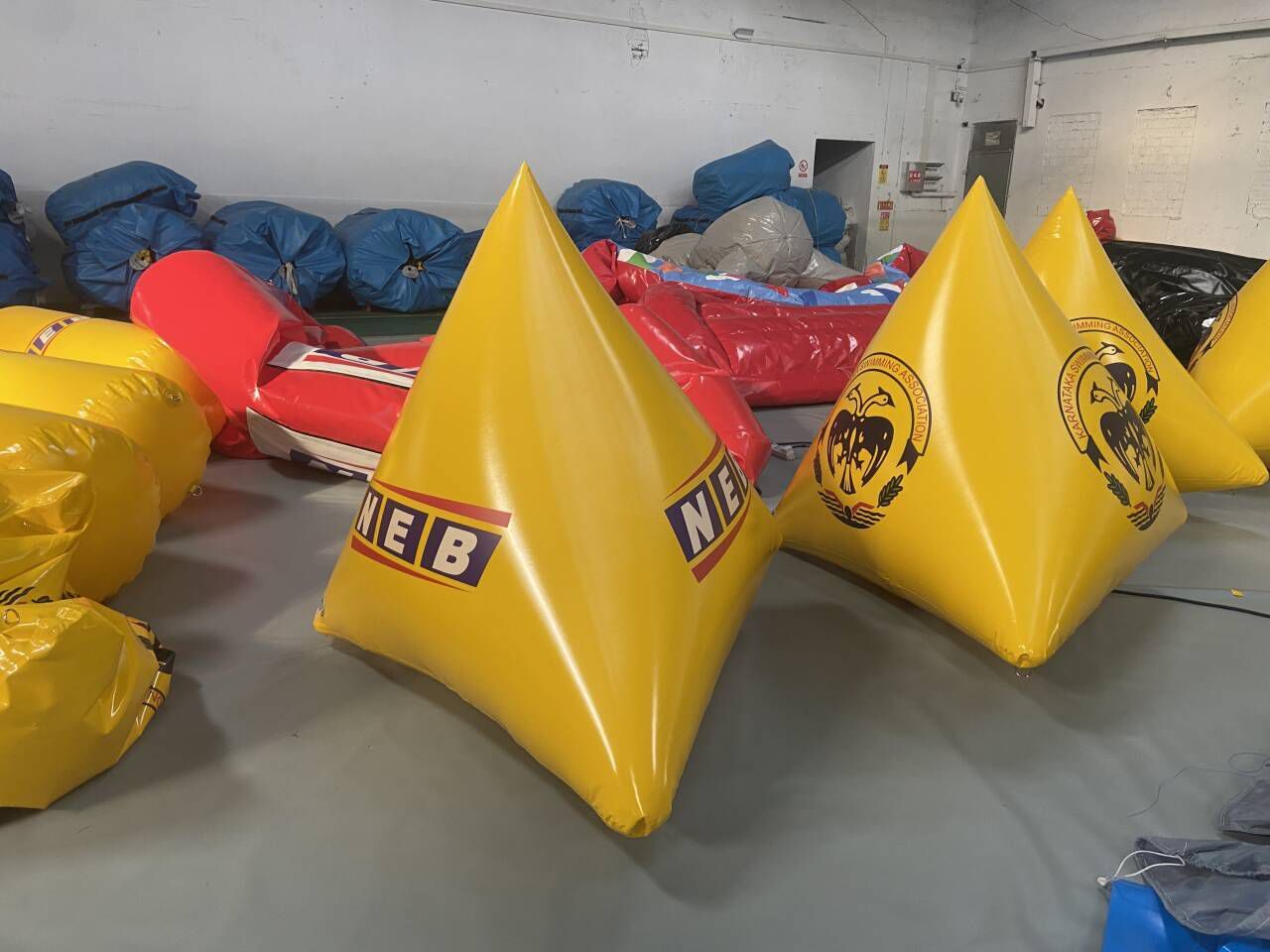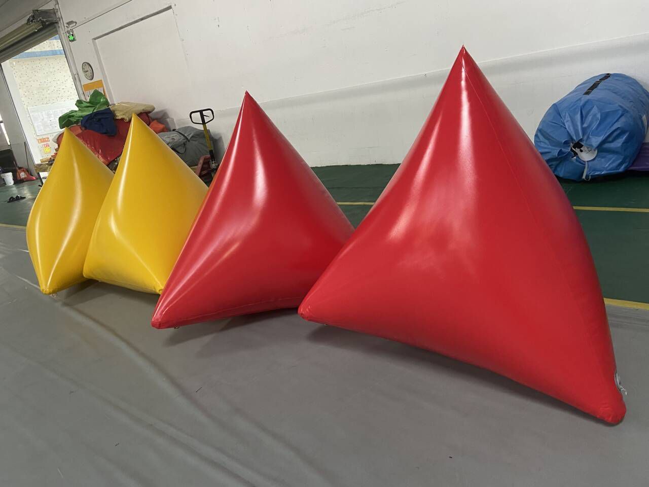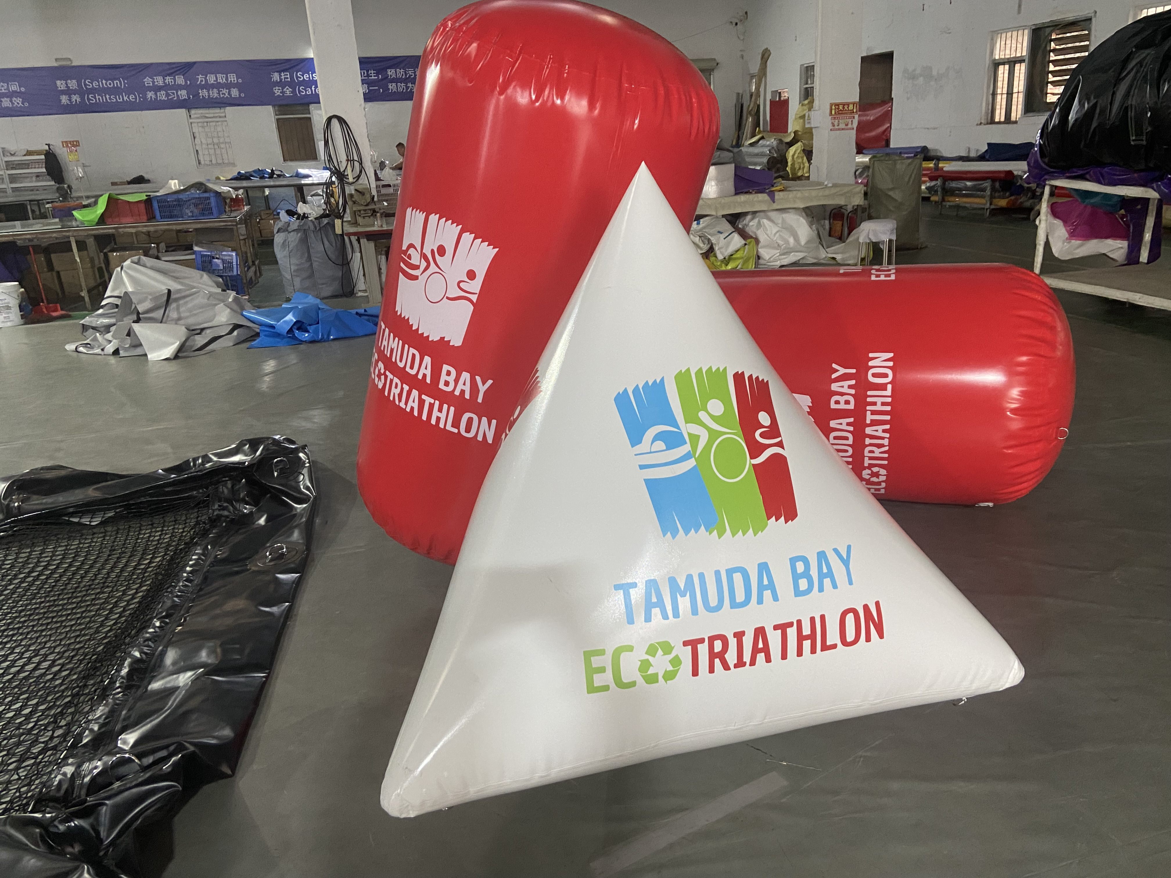 It is typically made of durable, waterproof and flexible materials such as PVC or reinforced rubber. These materials are chosen for their ability to withstand the rigors of being in the water, including exposure to sunlight, waves, and potential contact with boats or other objects. When inflated, it takes on a distinct shape, often spherical or cylindrical, which makes it highly visible on the water’s surface. The buoy usually has a bright color, like vivid orange, yellow or red, to ensure that it can be easily spotted from a distance by competitors, race officials, and spectators alike.