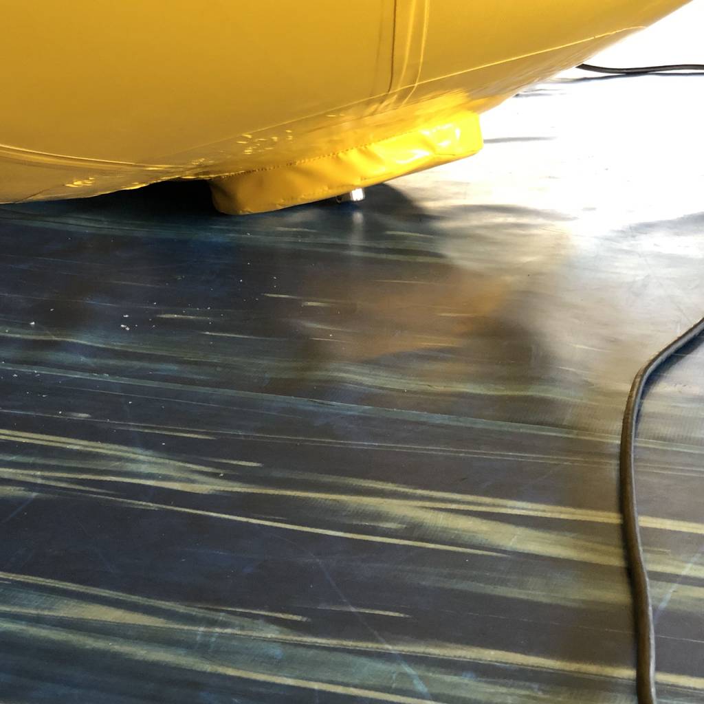 The UFO is inflated using a high-volume, low-pressure inflator or manual pump, and it can be anchored to boats or docks to prevent drifting.