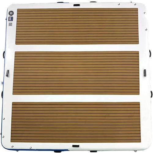 Best inflatable dock's are the only water platforms on the market with industry exclusive HEAT WELDED seams on a drop stitch platform. UV resistant heavy duty PVC. thick deluxe teak wood EVA foam top.
