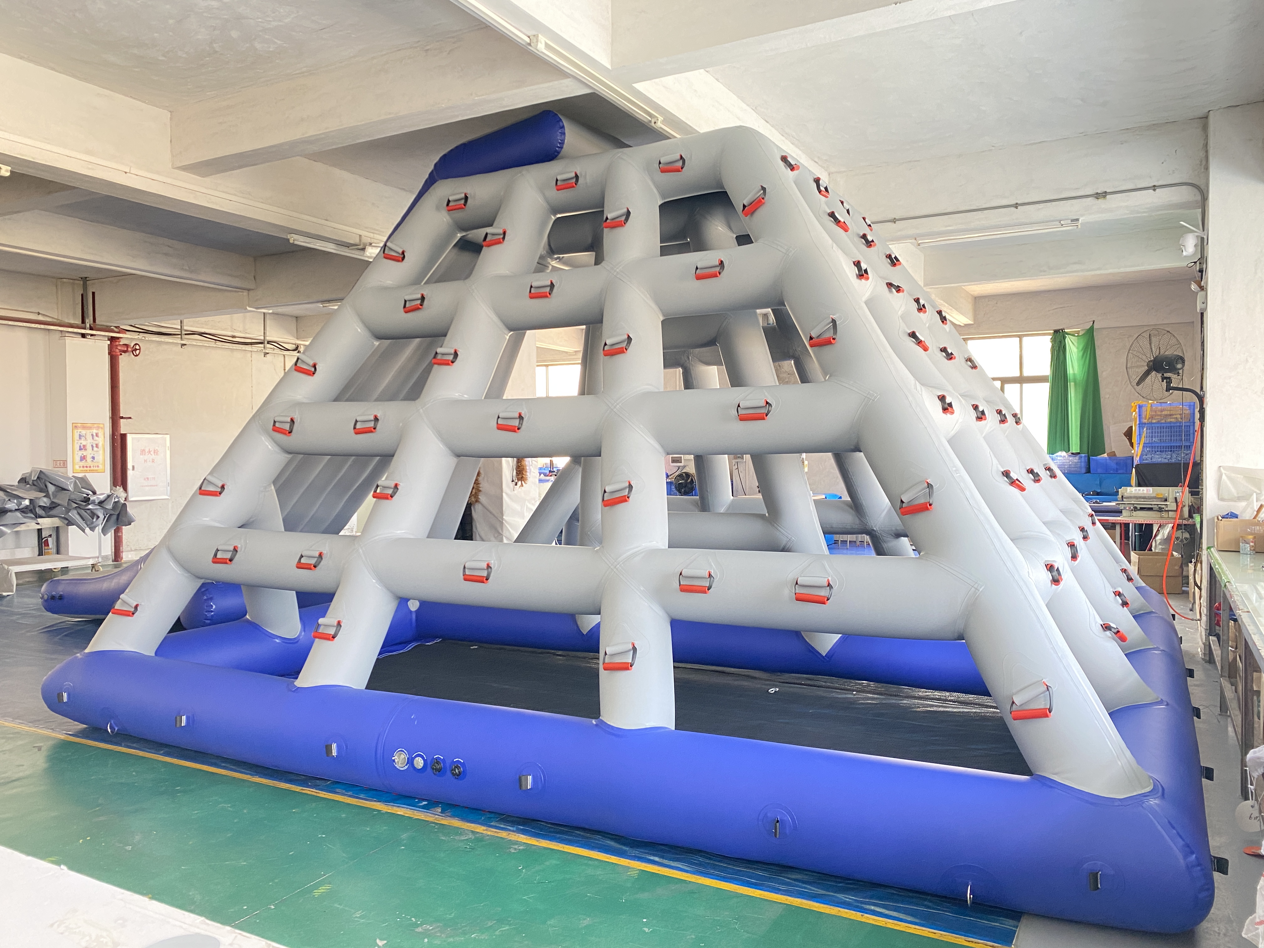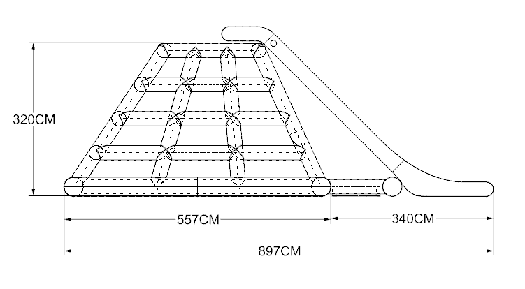 outrageous multi-use playstation designed for those who find other options just a bit too tame. This 6'9" tall pyramid is built for climbing, sliding, jumping, splashing, and a whole lot more. Outside climbing walls angle inward for easy access and stability, while the corner posts serve as exciting "drop zones" for sliding. Multiple tiers let you leap from the level of your choice. Once inside, you can climb up through the top on the interior climbing wall. Mesh floors create two separate splash zones for water wars or simply for lounging.